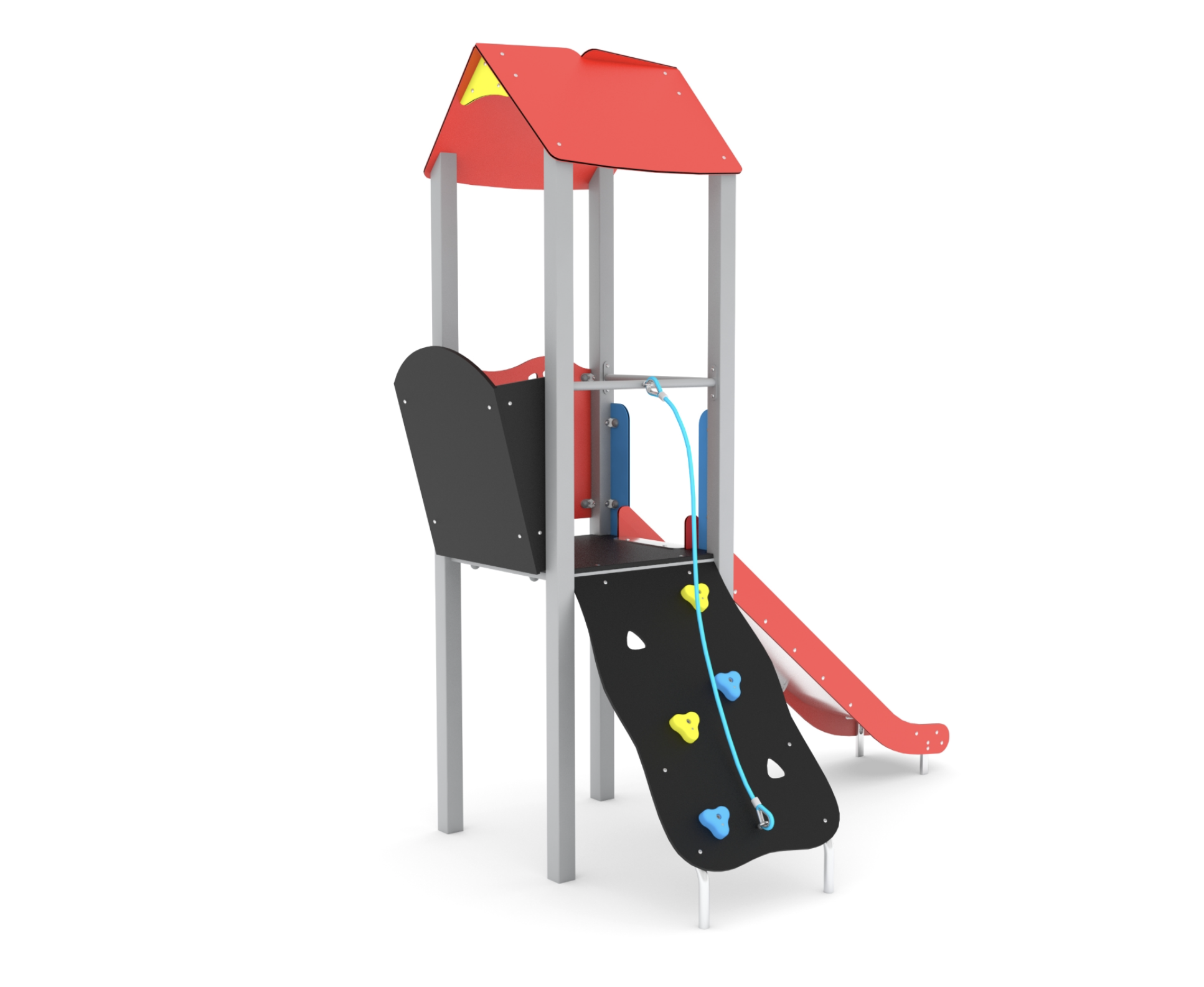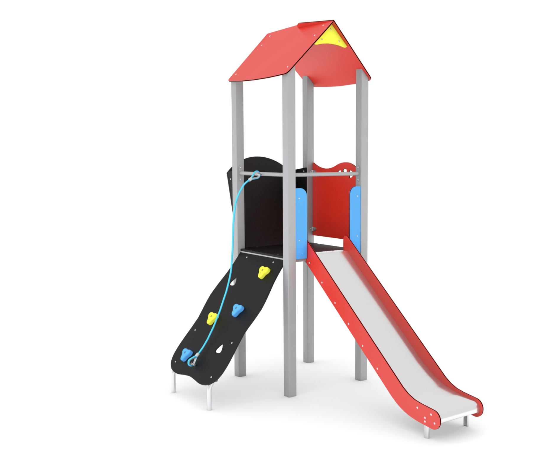 Structure maisonnette toboggan Steel classique avec pan incliné d’escalade incliné.
