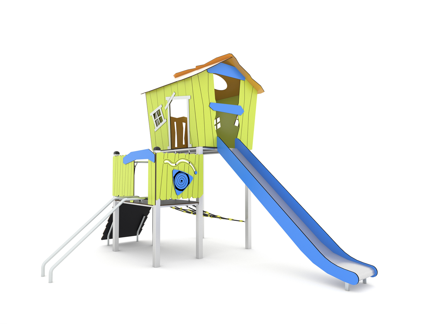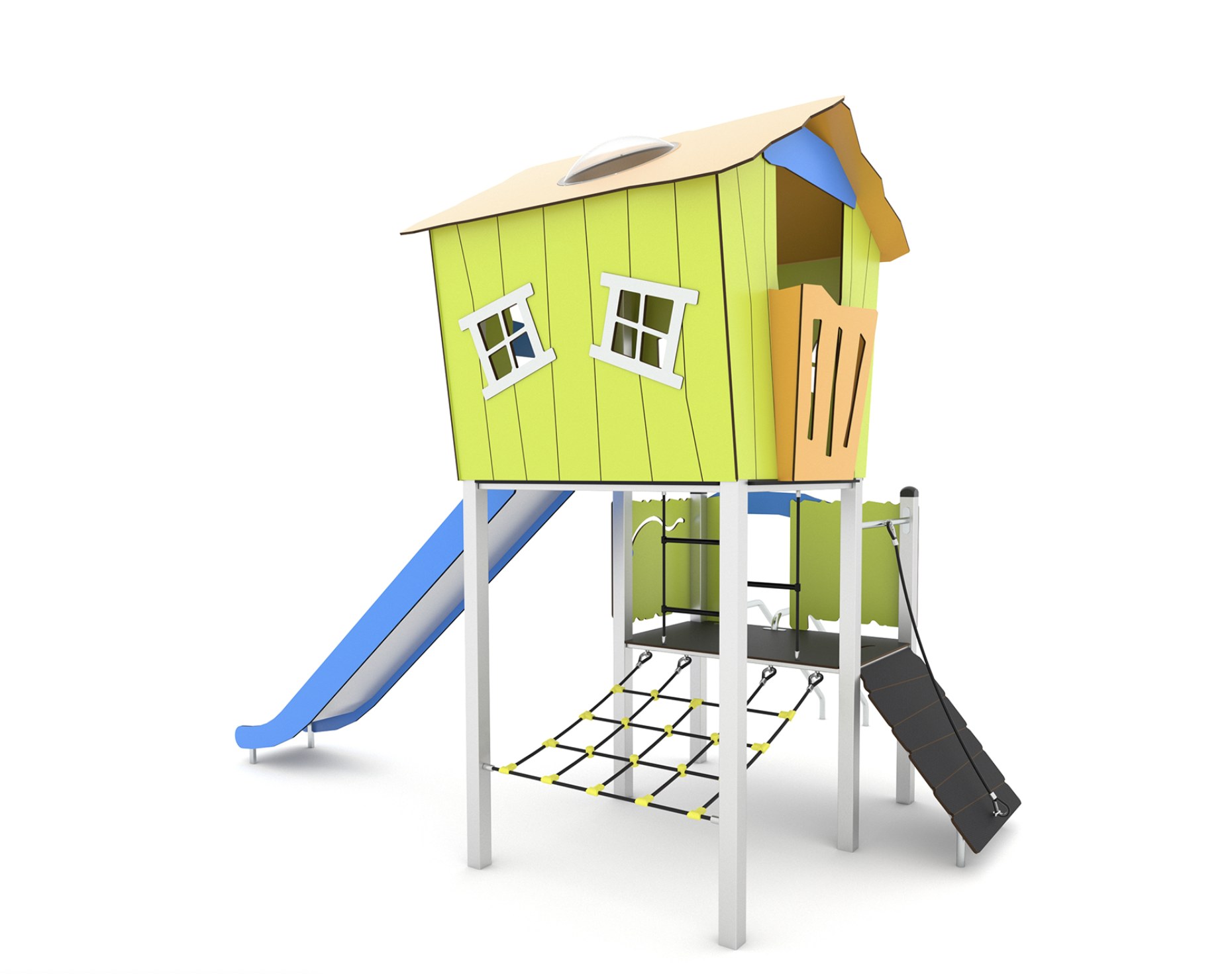 maisonnette inox avec toboggan et filet