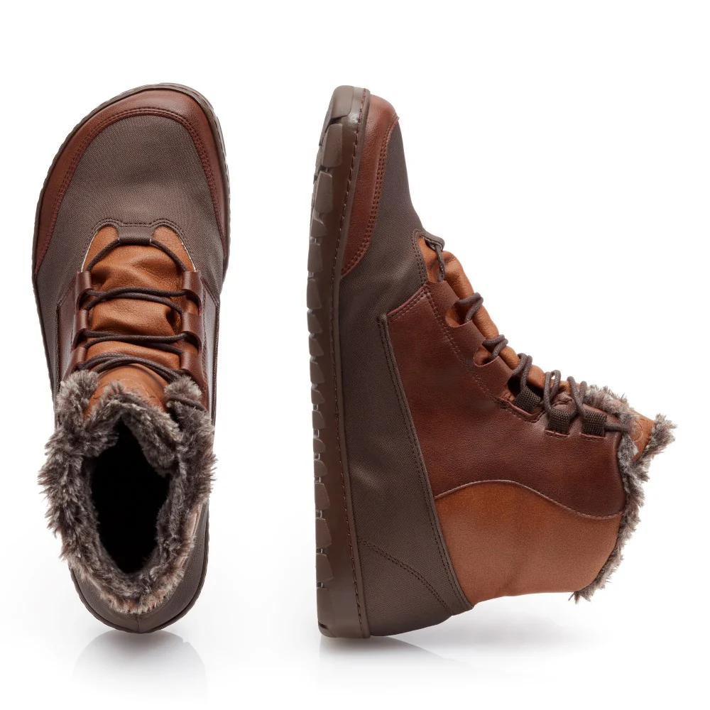 La chaussure aux pieds nus est également équipée d’un amortissement et la semelle du caoutchouc de matériau non flexible, non glissé et résistant à l’abrasion en brun, a été conçue pour de longues randonnées et un terrain rugueux.